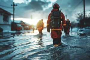 Emergency services responding to a natural disaster